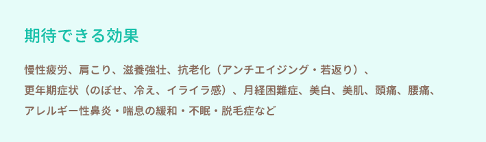 また、病気の治療以外にも、疲労の回復や自己免疫疾患・アレルギー疾患の改善、美肌・アンチエイジングなどの美容効果が認められているため、広く活用されています。